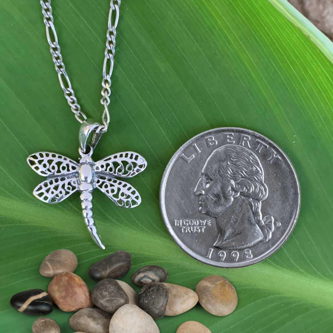 Our Airy Sterling Silver Dragonfly Pendant features delicate filigree wings that give it a light and graceful design. Crafted in sterling silver, this pendant captures the beauty and symbolism of the dragonfly, often seen as a symbol of transformation, adaptability, and living life to the fullest. Its airy style makes it a versatile piece for everyday wear or as a meaningful gift for someone special.
