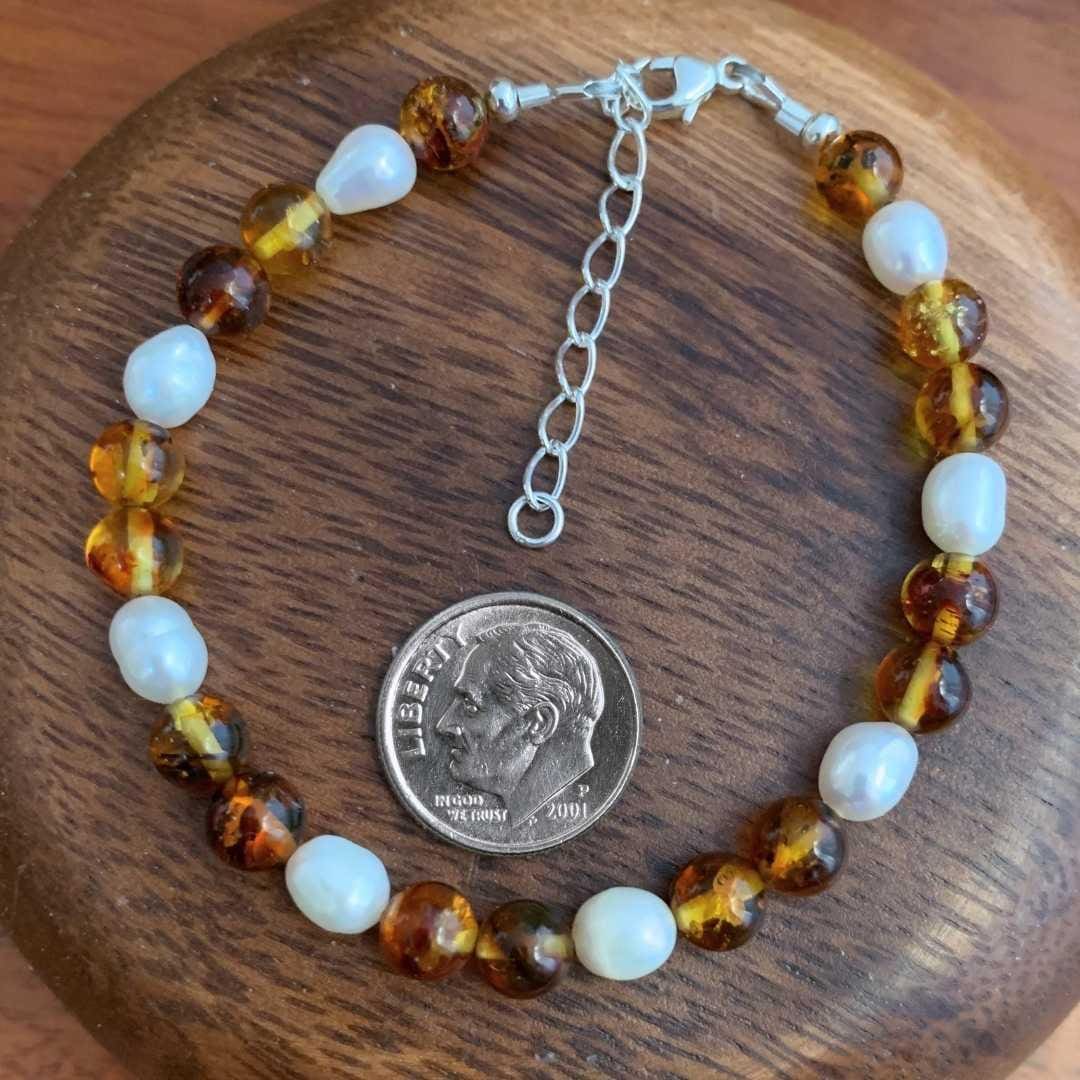 Amber and Pearl Beaded Bracelet