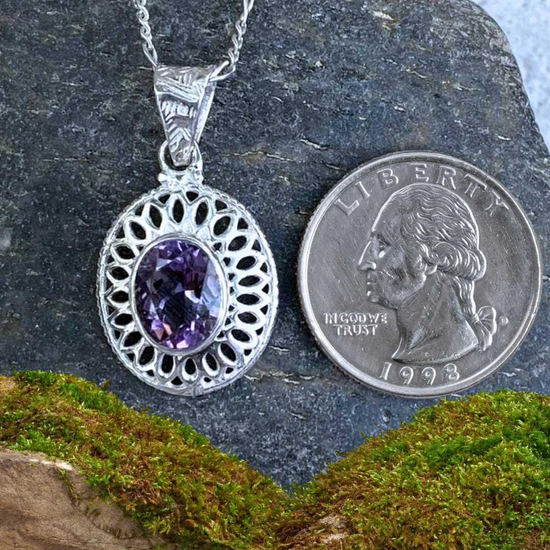 Whether worn daily or for special occasions, this filigree amethyst and sterling silver pendant is a stunning way to celebrate February birthdays—or anyone who loves the beauty of amethyst.