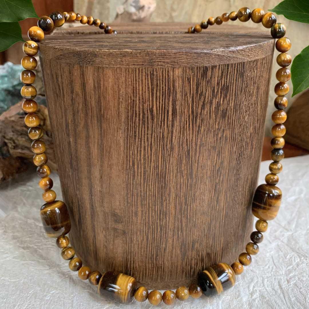 Introducing our Barrel and Round Tiger’s Eye Beaded Necklace, a bold statement piece designed for those who love the warm, earthy glow of natural gemstones. This handcrafted necklace features large barrel-shaped Tiger’s Eye gemstones accented by smaller round Tiger’s Eye beads, creating a beautiful balance of texture, dimension, and movement.