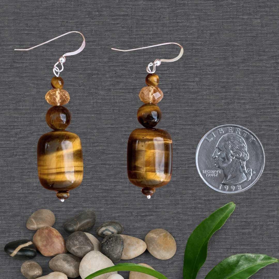 Barrel Tiger’s Eye and Citrine Beaded Earrings