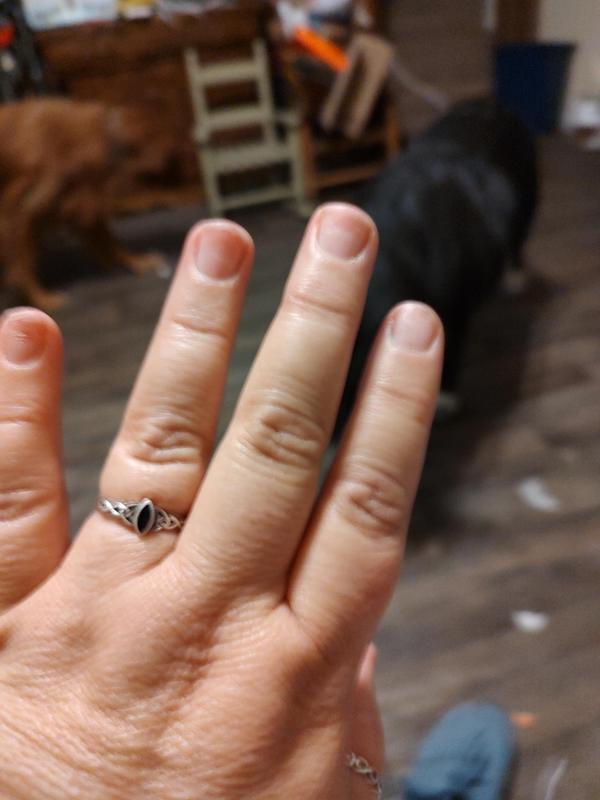 Beautiful ring. I couldn't be more pleased with it. Arrived quickly and well packaged. Very caring seller. I will definitely be buying more in the future.