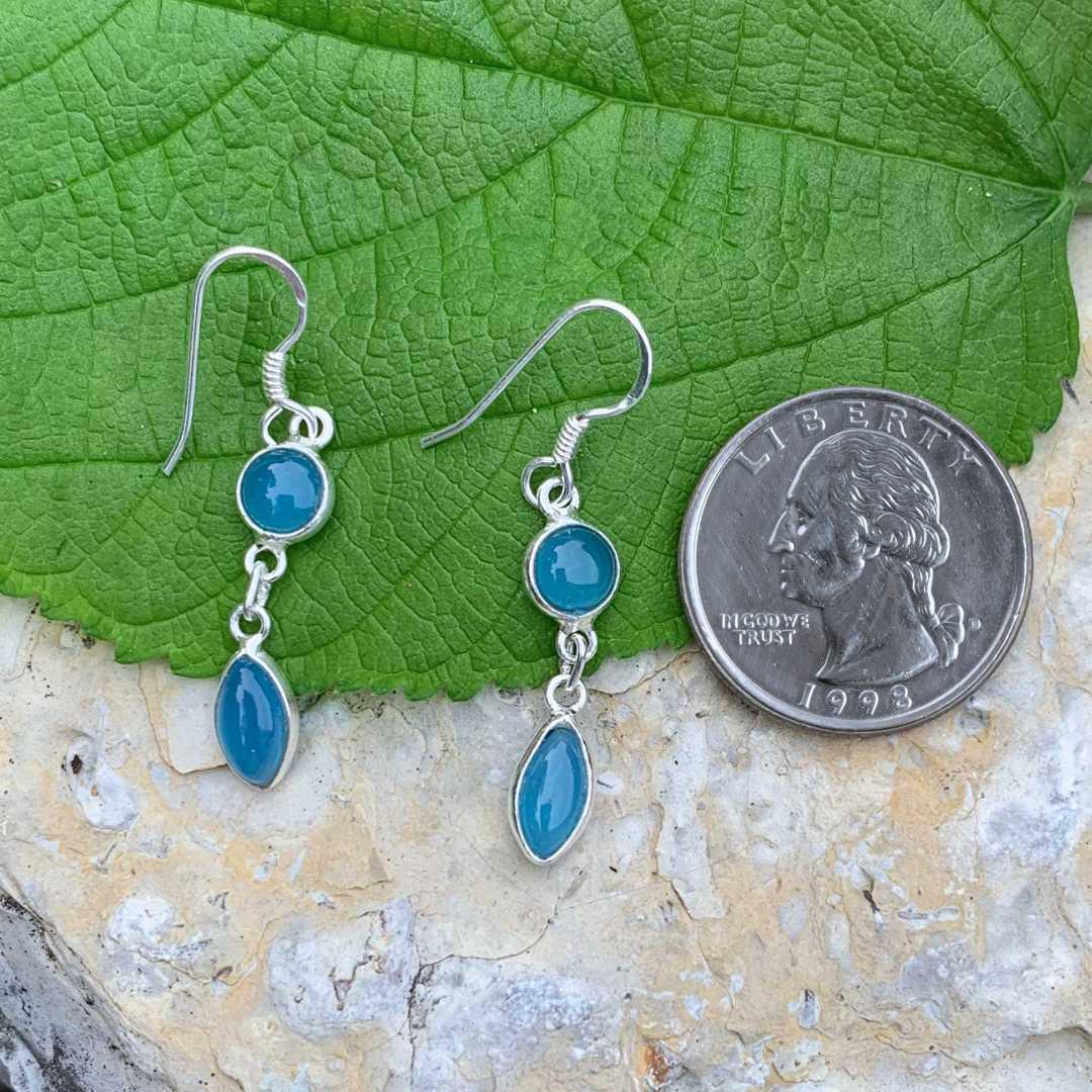 Add a bit of dangle to your look with our Blue Chalcedony and Sterling Silver Double Drop Earrings. Featuring two soft blue chalcedony stones in a round and marquise shape, these earrings offer a serene touch. Set in polished sterling silver, they’re perfect for both everyday wear and special occasions.