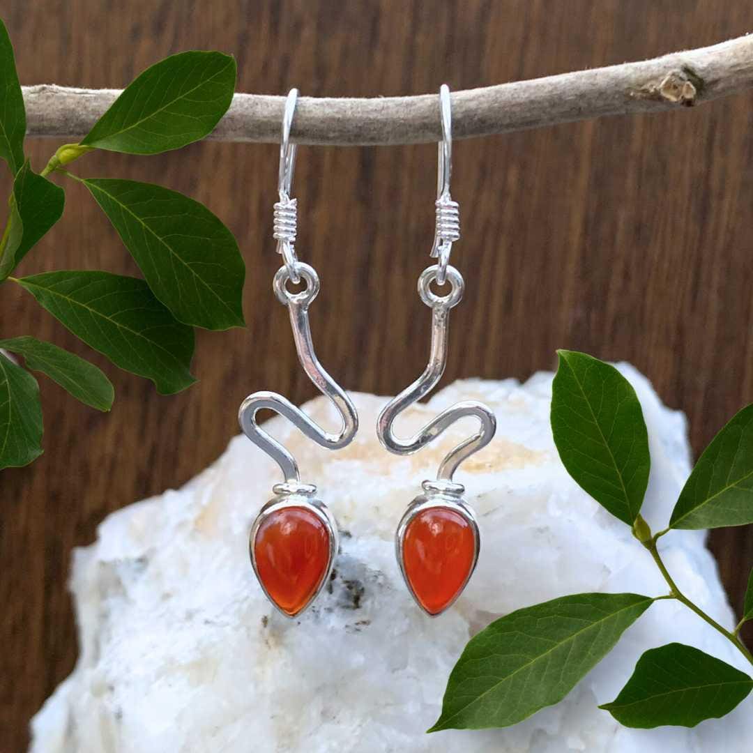 Contemporary Sterling Silver and Carnelian Teardrop Earrings