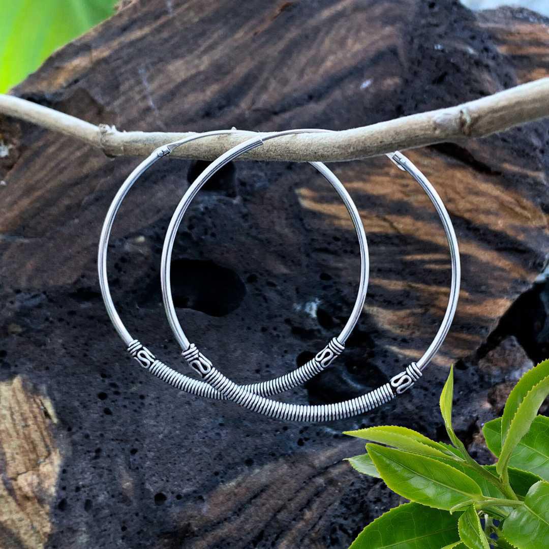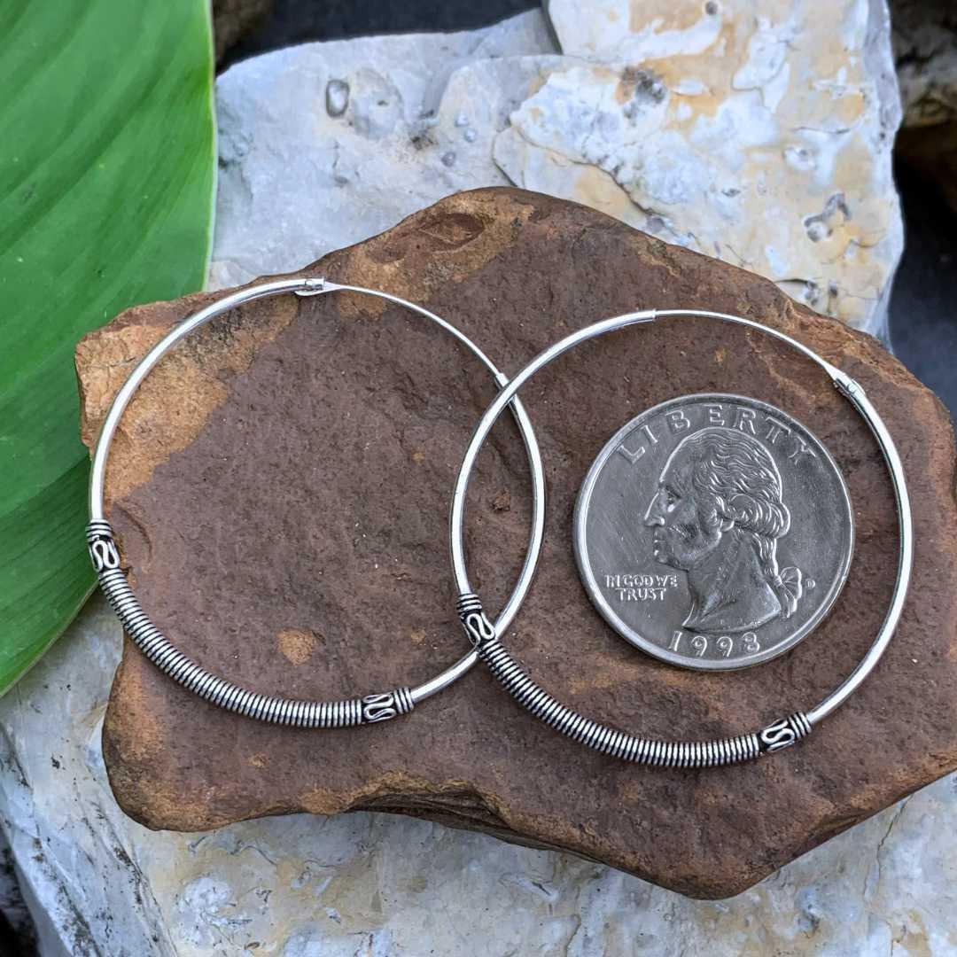 • Large Sterling Silver Wrapped Bali Hoop Earrings