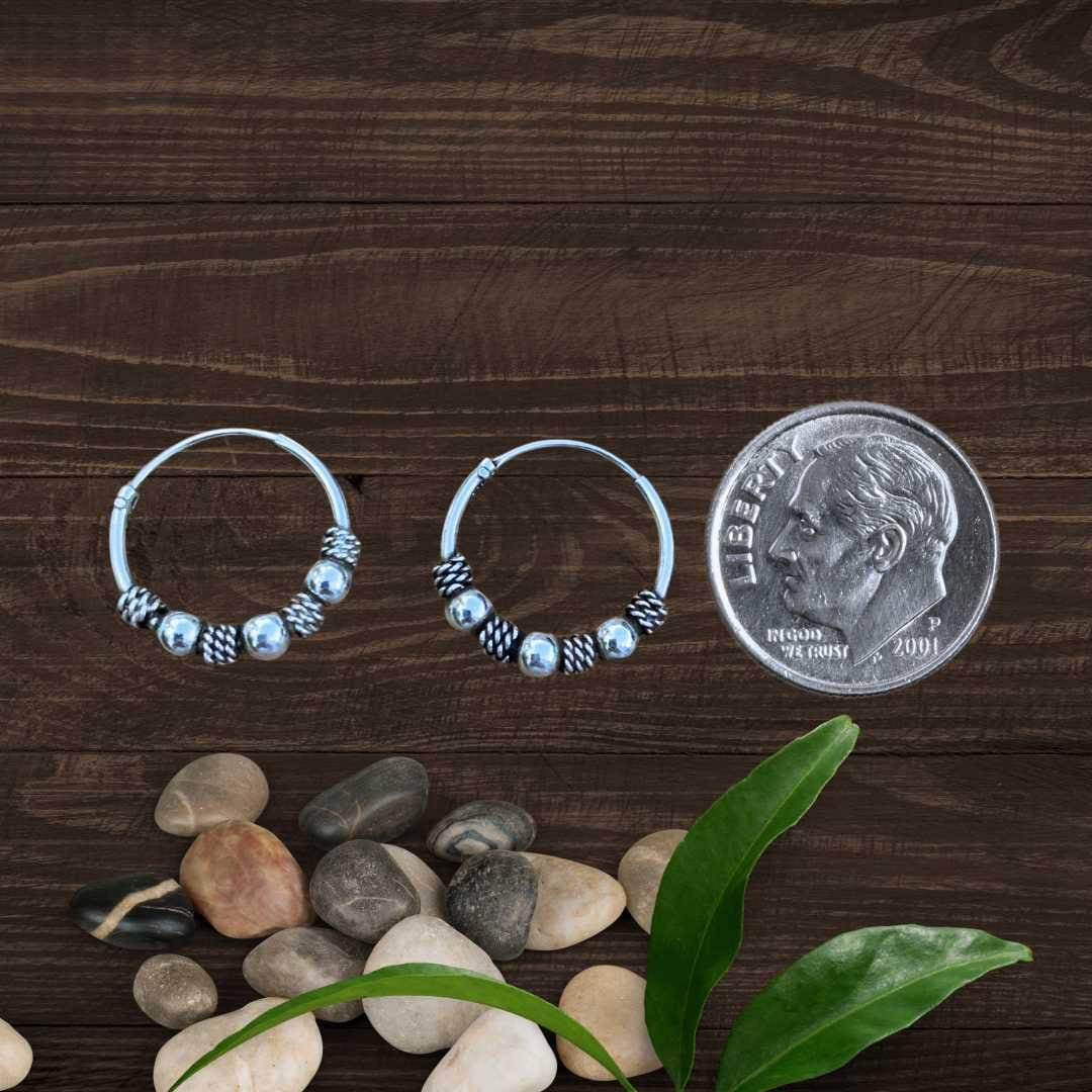 Mini Three Ball Bali Sterling Silver Hoop Earrings