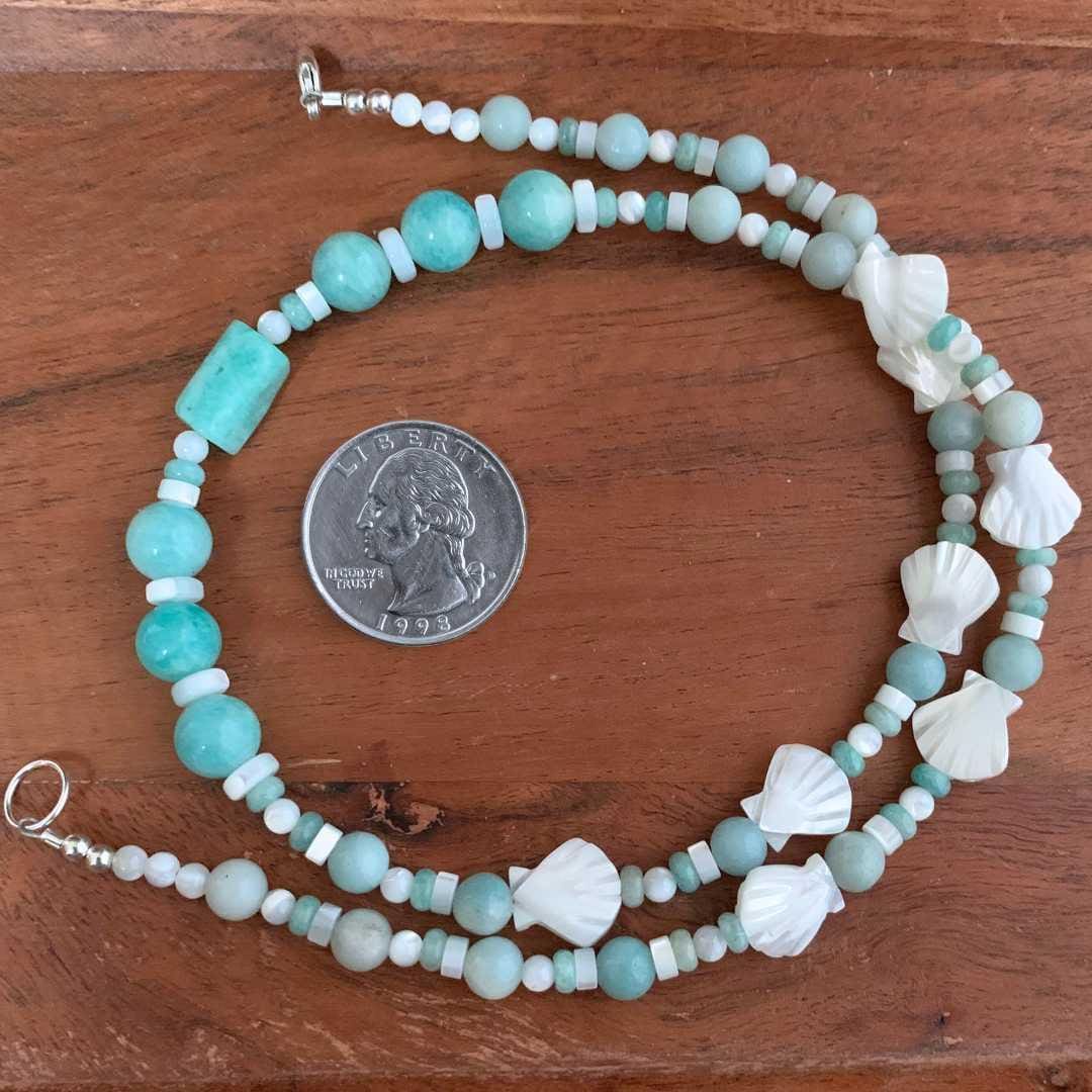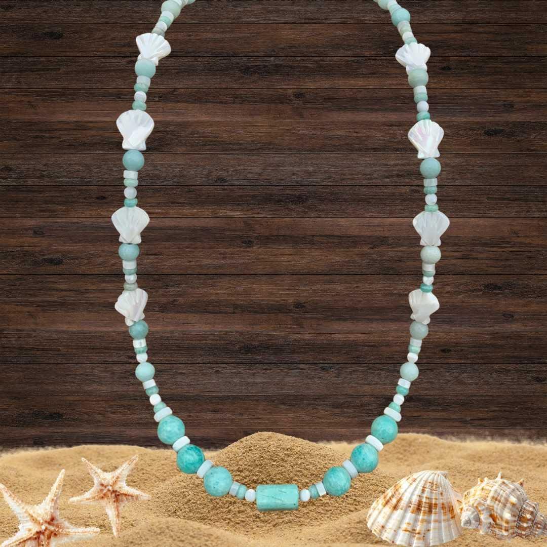 Mother of Pearl Seashell and Amazonite Necklace