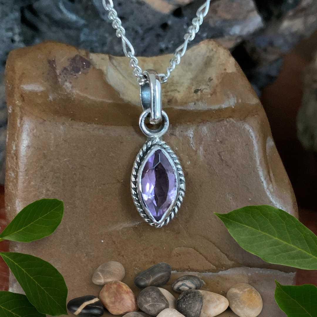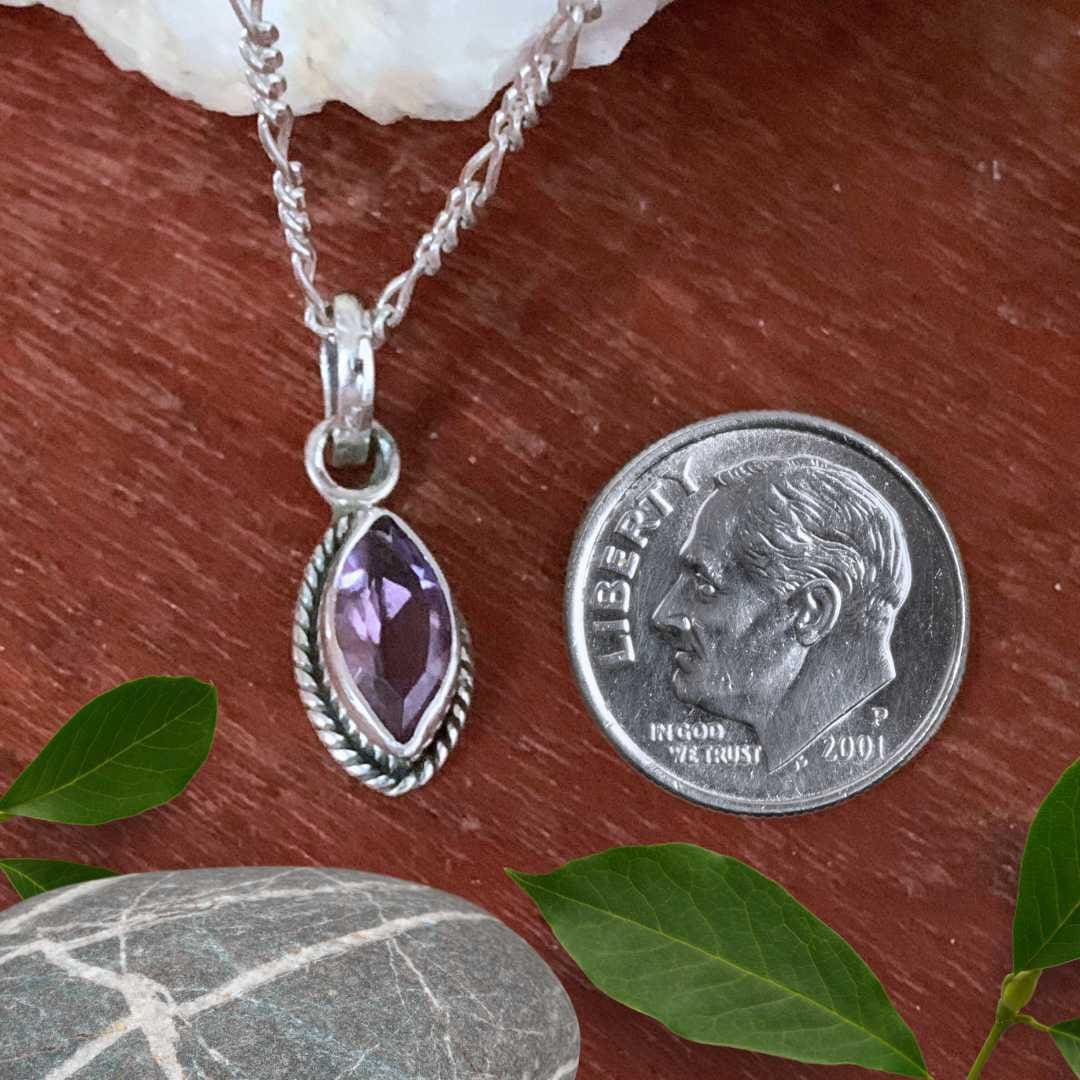 Petite Amethyst Marquise and Sterling Silver Pendant