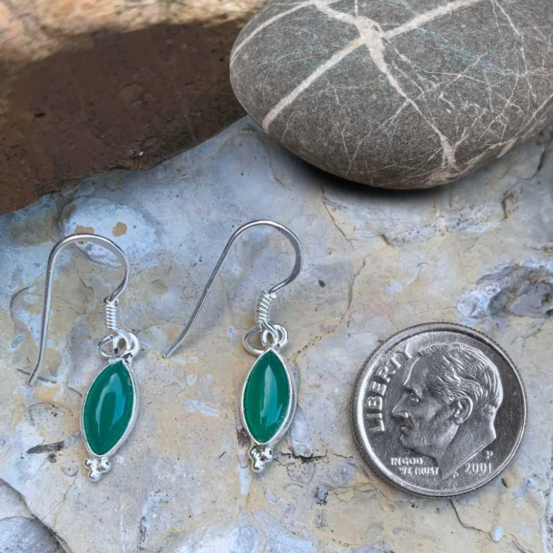 Petite Marquise Green Onyx and Sterling Silver Earrings
