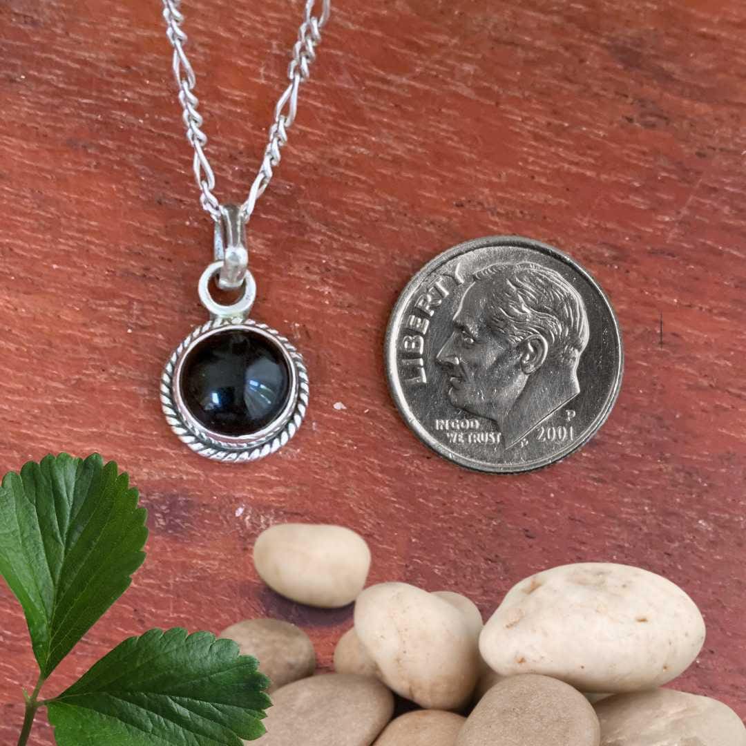 Add subtle elegance with our Petite Round Black Onyx Sterling Silver Pendant. Featuring a small, polished black onyx gemstone set in sleek sterling silver, this minimalist pendant is perfect for everyday wear or layering with other favorite pieces.