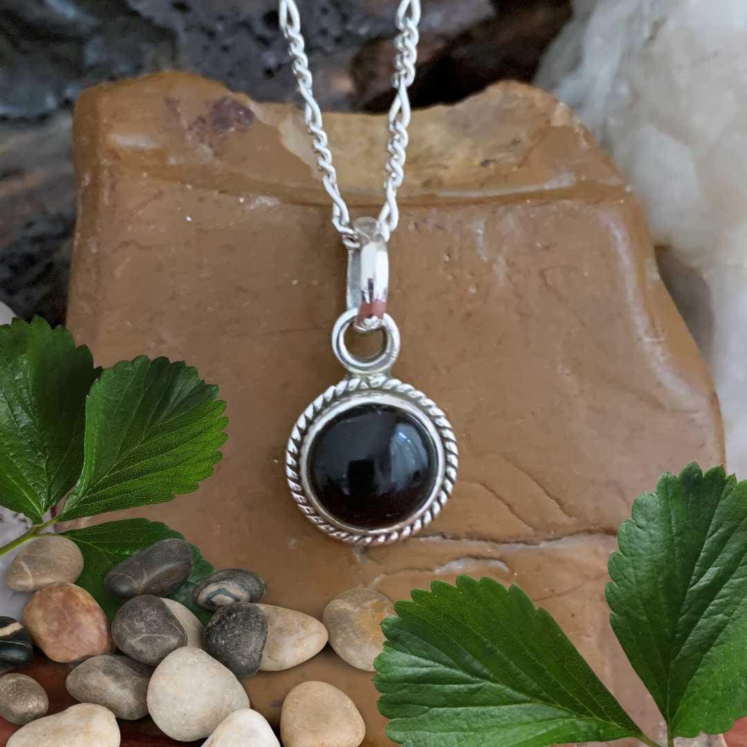 Petite Round Black Onyx Sterling Silver Pendant