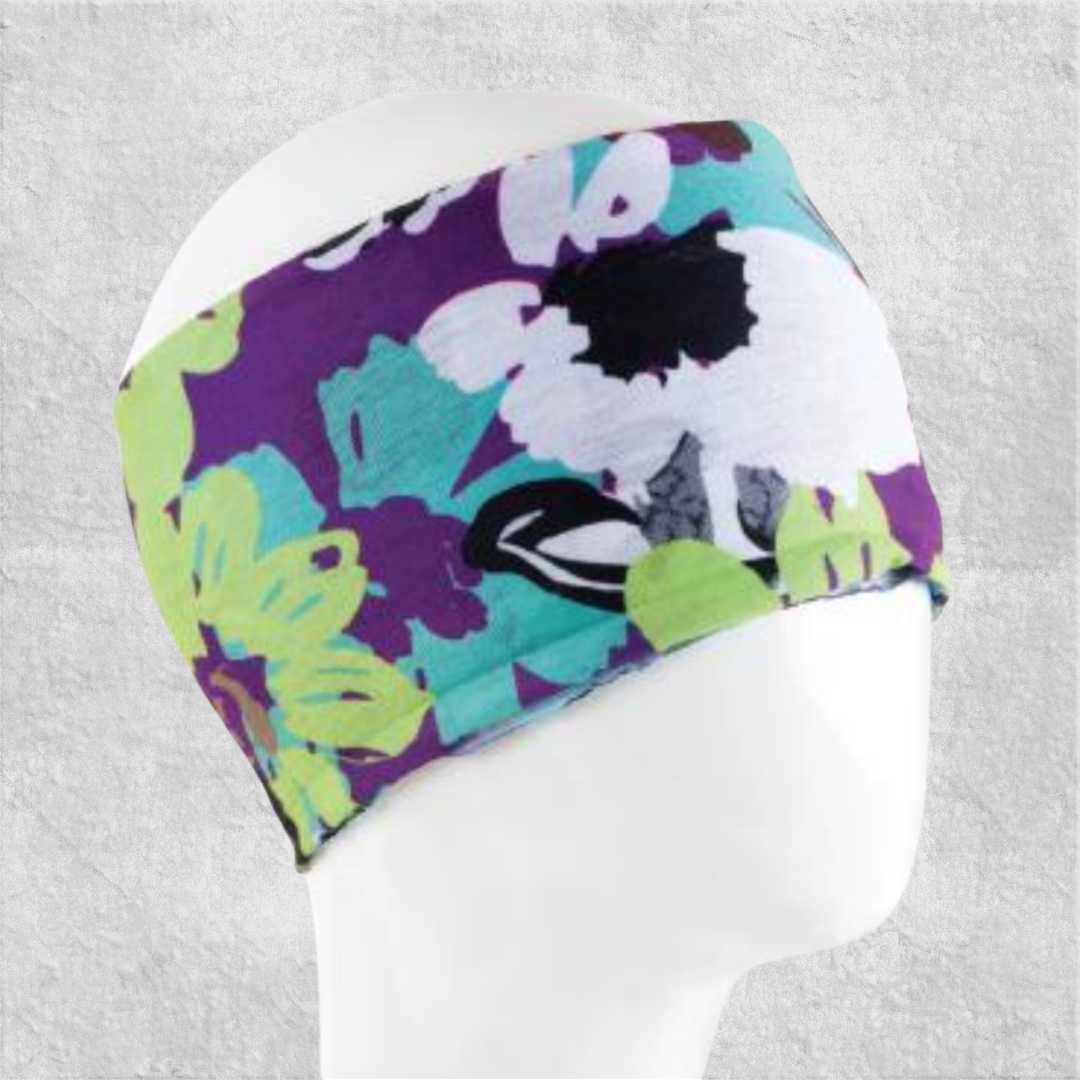 Purple and Turquoise Flowers Infinity Bandana Head Wrap