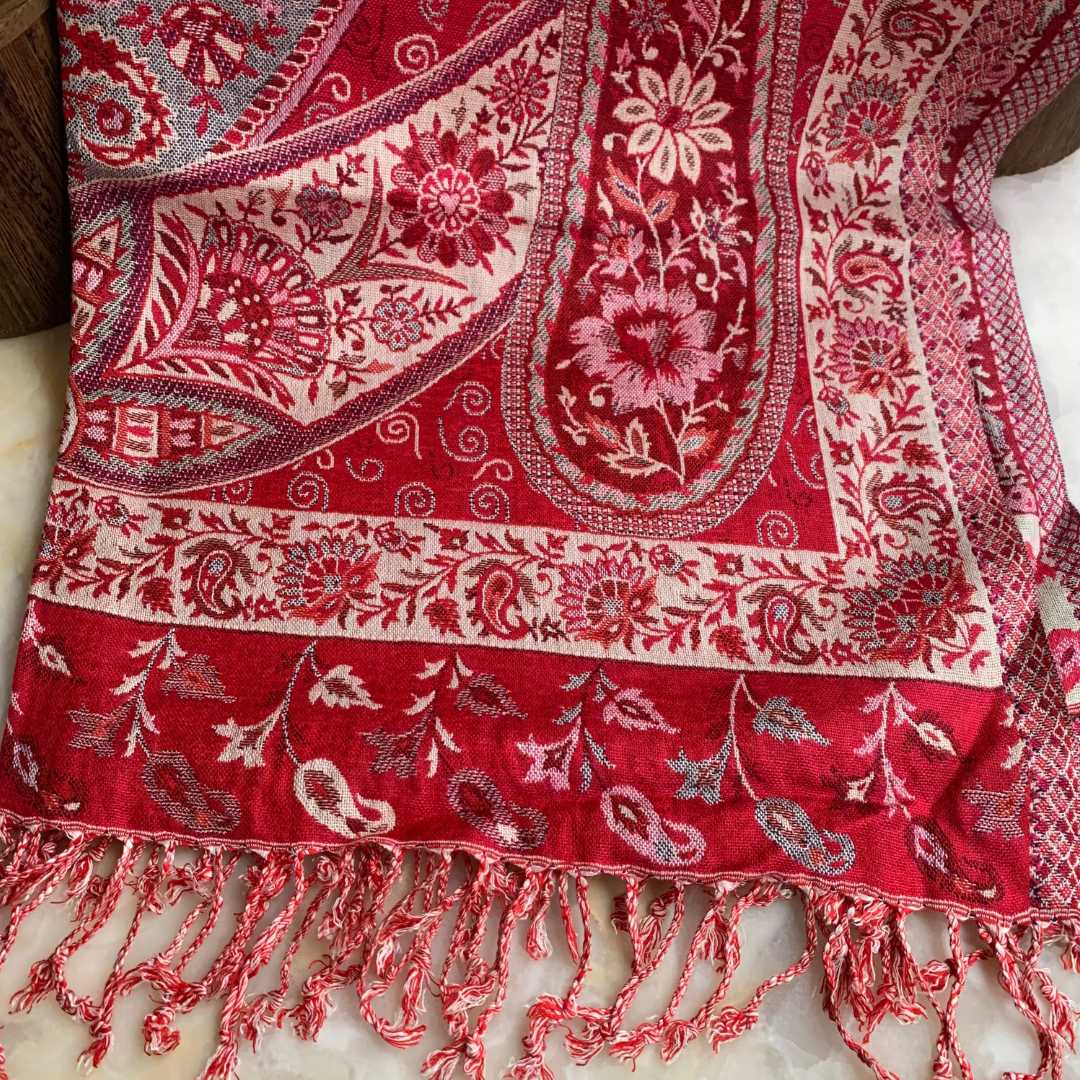 Red and Creme Swirls and Paisley Shawl-Scarf