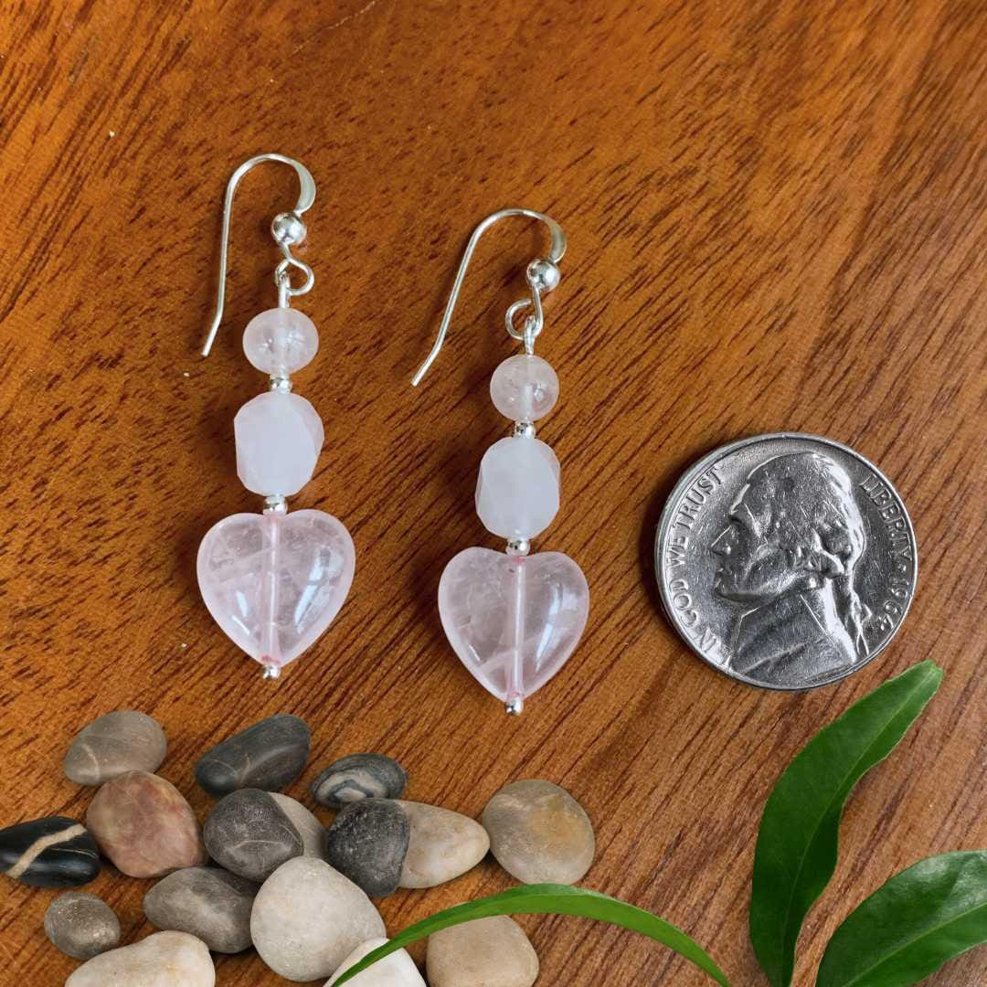 Finished with sterling silver accents and a comfortable dangle design, our Rose Quartz Beaded Heart Earrings are a meaningful and stylish addition to any gemstone jewelry collection.