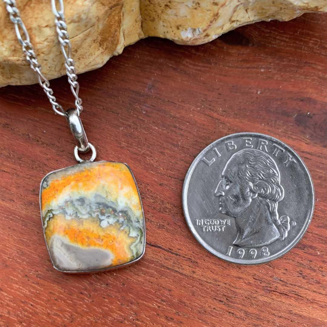 Add a bold pop of natural beauty to your jewelry collection with this stunning Square Bumblebee Jasper and Sterling Silver Pendant. Featuring a vibrant mix of golden yellows, deep grays, and striking black bands, each genuine jasper stone is unique—making every pendant one-of-a-kind. Set in polished 925 sterling silver, this handcrafted piece blends earthy elegance with modern design. Perfect for everyday wear or as a statement accessory, it’s a must-have for gemstone lovers and nature-inspired style enthusiasts.