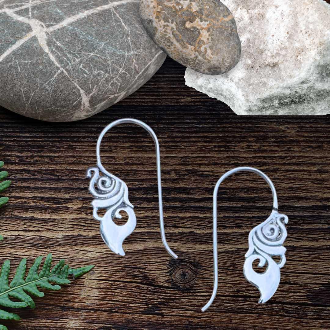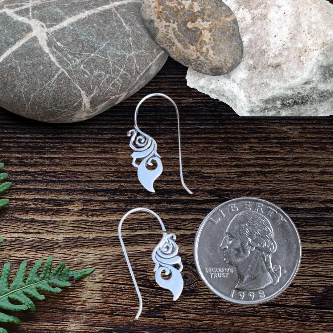 When you want just a little something to accessorize, try our Sterling Minimalist Drop Earrings. No dangle, just a nice little drop off the ear lobe with abstract swirling designs. Perfect for any outfit in your wardrobe.