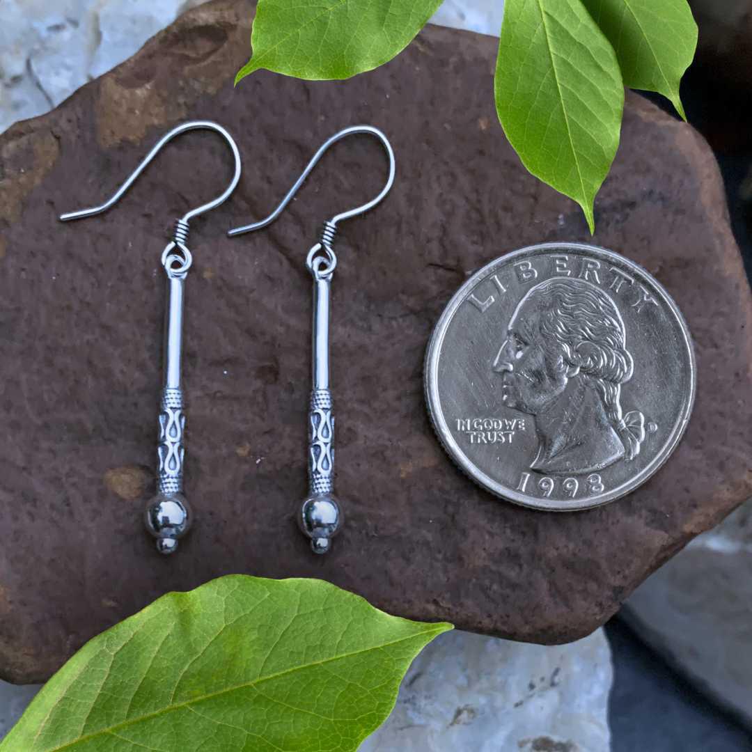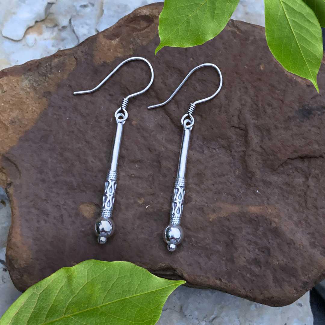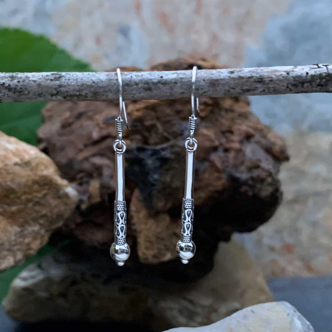 Add a touch of boho elegance with our Sterling Silver Bali Stick Dangle Earrings. Handcrafted with intricate detailing, these slender stick earrings feature traditional Balinese design elements and a graceful drop that sways with every step. Lightweight and versatile, they’re perfect for everyday wear or a night out.