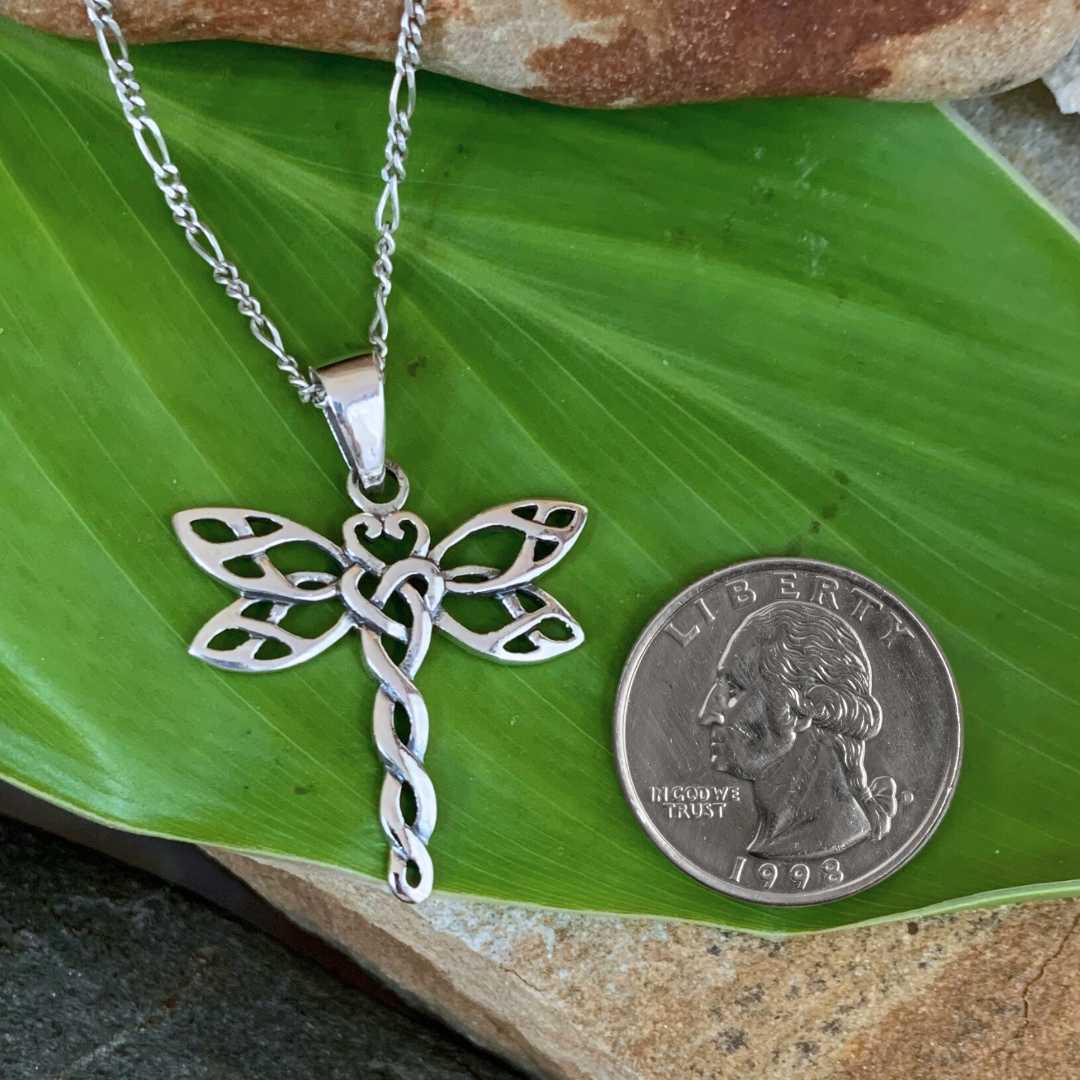 Our Sterling Silver Celtic Dragonfly Pendant blends natural beauty with timeless symbolism. Crafted in polished sterling silver, this unique design features a dragonfly accented with Celtic knot patterns, representing transformation, adaptability, and eternal life. A meaningful and elegant pendant for everyday wear or as a thoughtful gift.