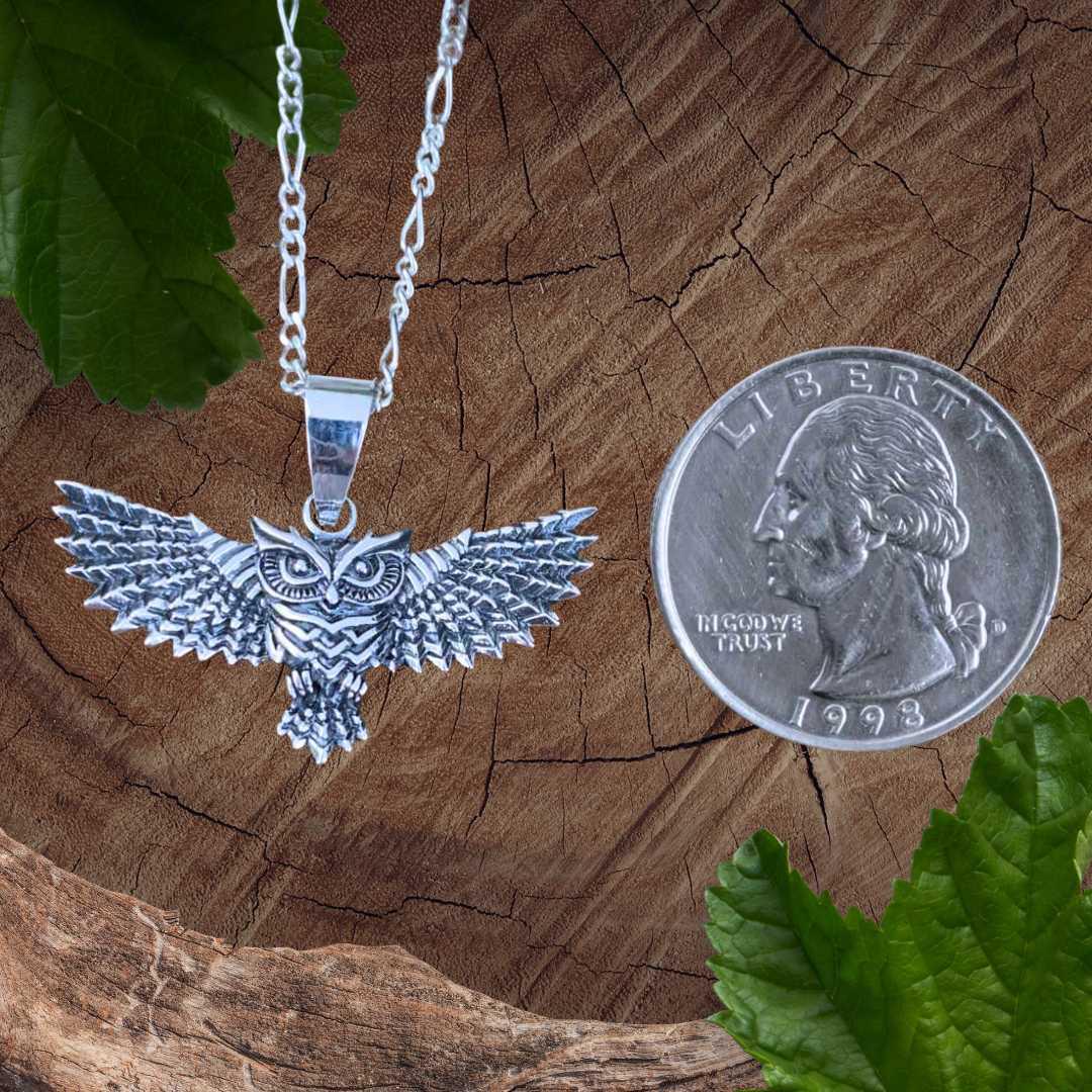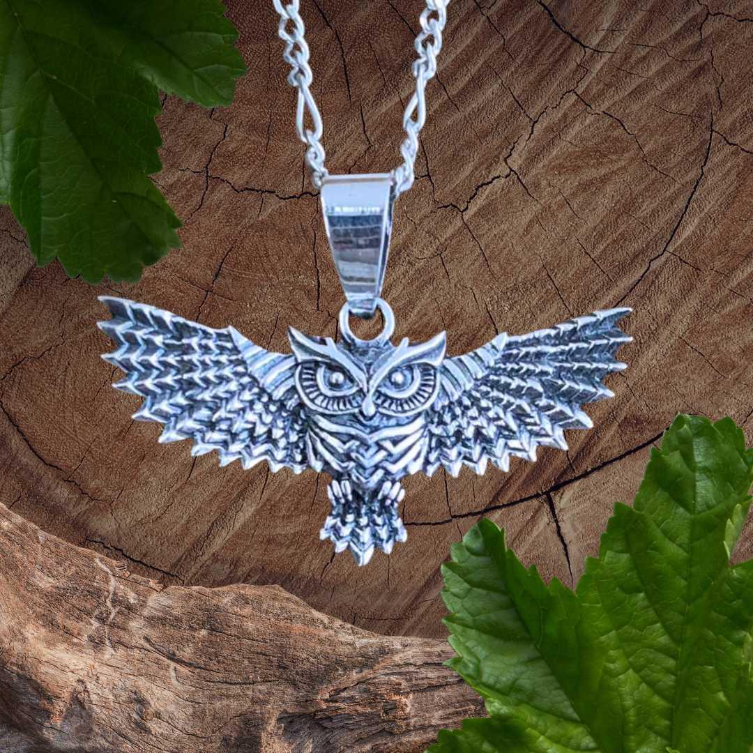 Embrace the spirit of wisdom and freedom with our Sterling Silver Flying Owl Pendant. Beautifully crafted in fine sterling silver, this detailed pendant features an owl in mid-flight with outstretched wings. A perfect gift for owl lovers and nature enthusiasts, this eye-catching piece adds a touch of mystery and magic to any jewelry collection.