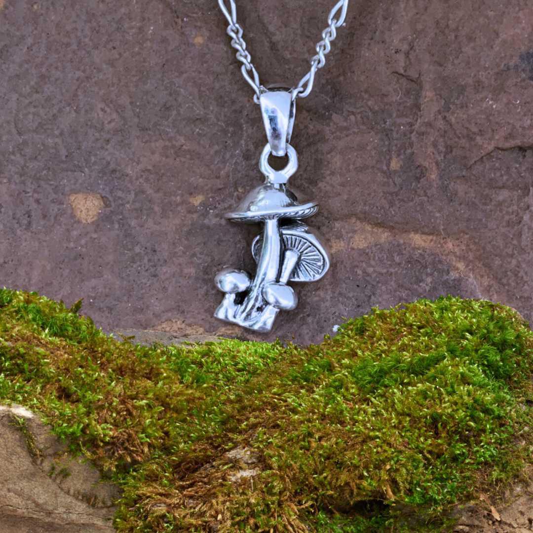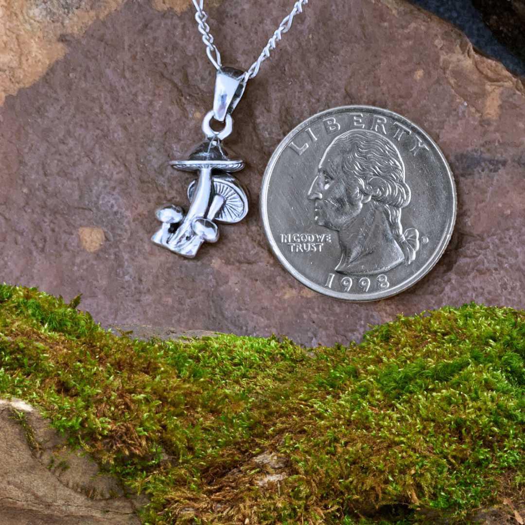 Embrace earthy elegance with our Sterling Silver Mushroom Cluster Pendant. Featuring a detailed cluster of mushrooms in gleaming sterling silver, this nature-inspired pendant captures the magic of the forest. Perfect for woodland lovers and fans of boho or fairycore style, it adds a whimsical touch to any outfit.