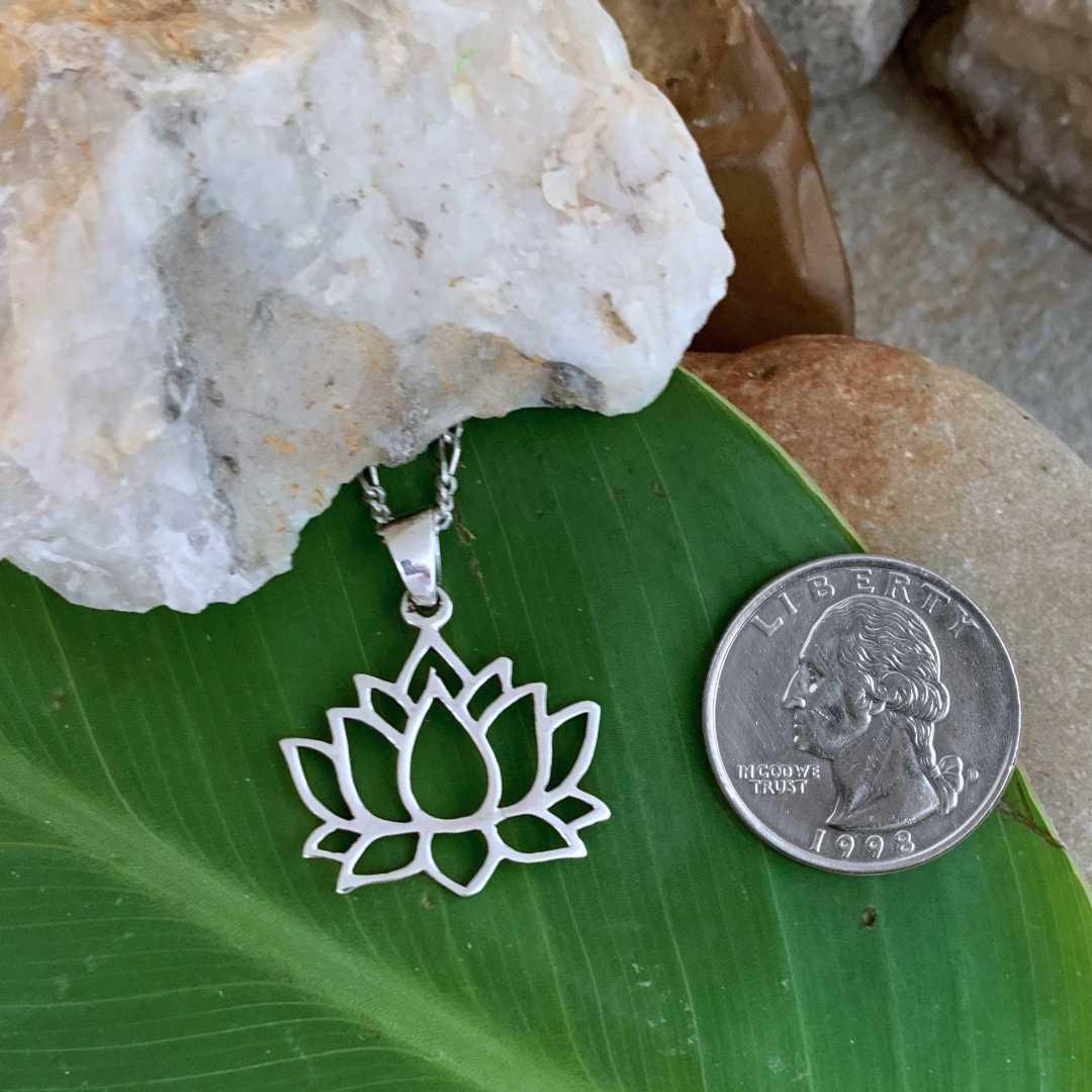 Our Sterling Silver Open Lotus Pendant is a graceful symbol of purity, growth, and spiritual awakening. Crafted in polished sterling silver, this open lotus design embodies simplicity and elegance, making it a versatile piece for everyday wear. In mindfulness practices, the lotus represents rising above challenges and embracing inner peace, making this pendant a meaningful accessory or gift.