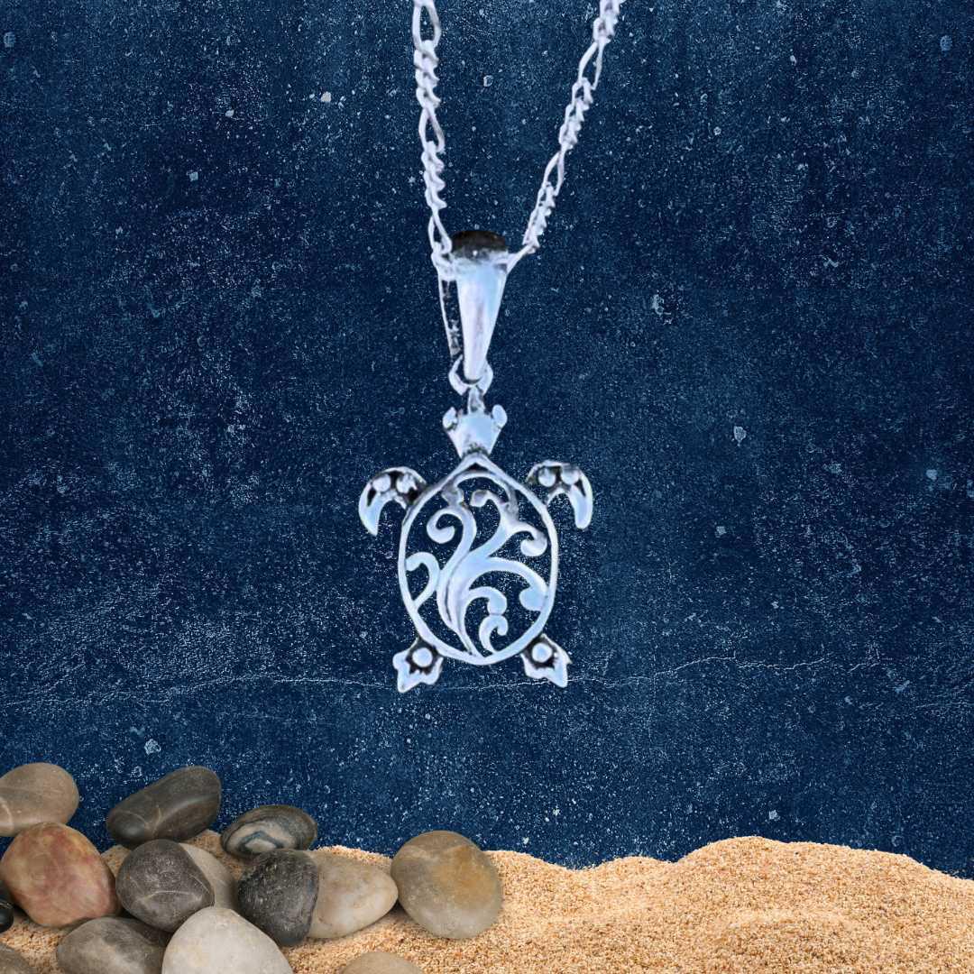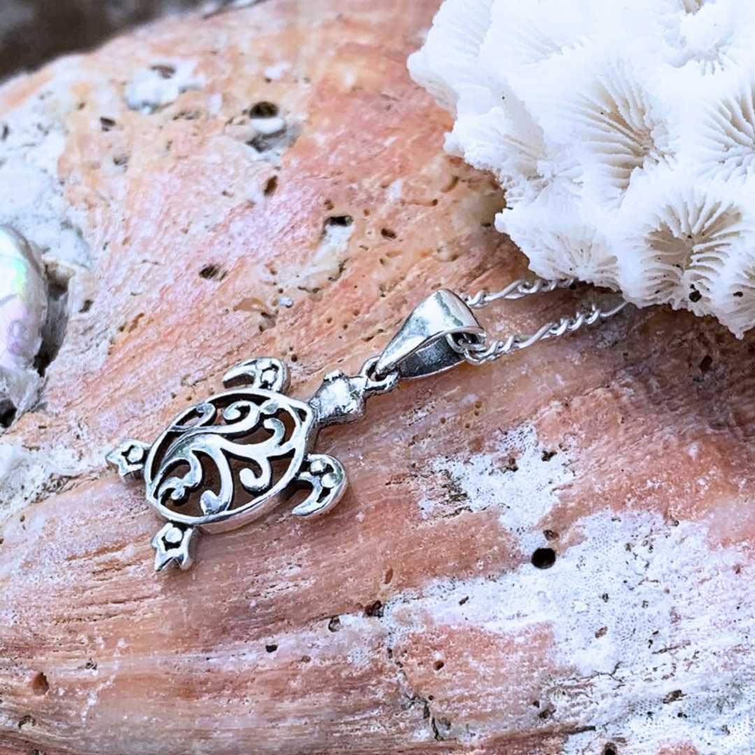 How delicate and beautiful this Filigree Sterling Silver Sea-Turtle Pendant is! A soft and open look, the tiny shell is is decorated with an open filigree design. You’ll love wearing this pretty little turtle. It’s unique and perfect for turtle lovers everywhere!